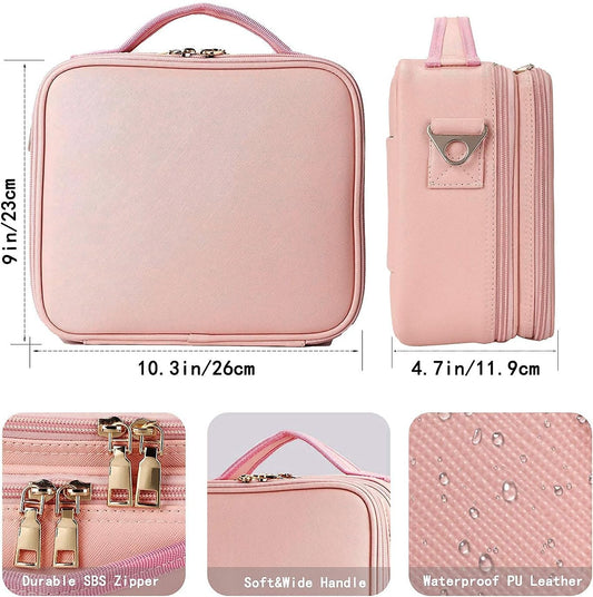 Chic Pink Cosmetic Bag with Waterproof PU Leather, Durable SBS Zippers, and Spacious Compartments, 10.3 x 9.1 x 4.7 Inches